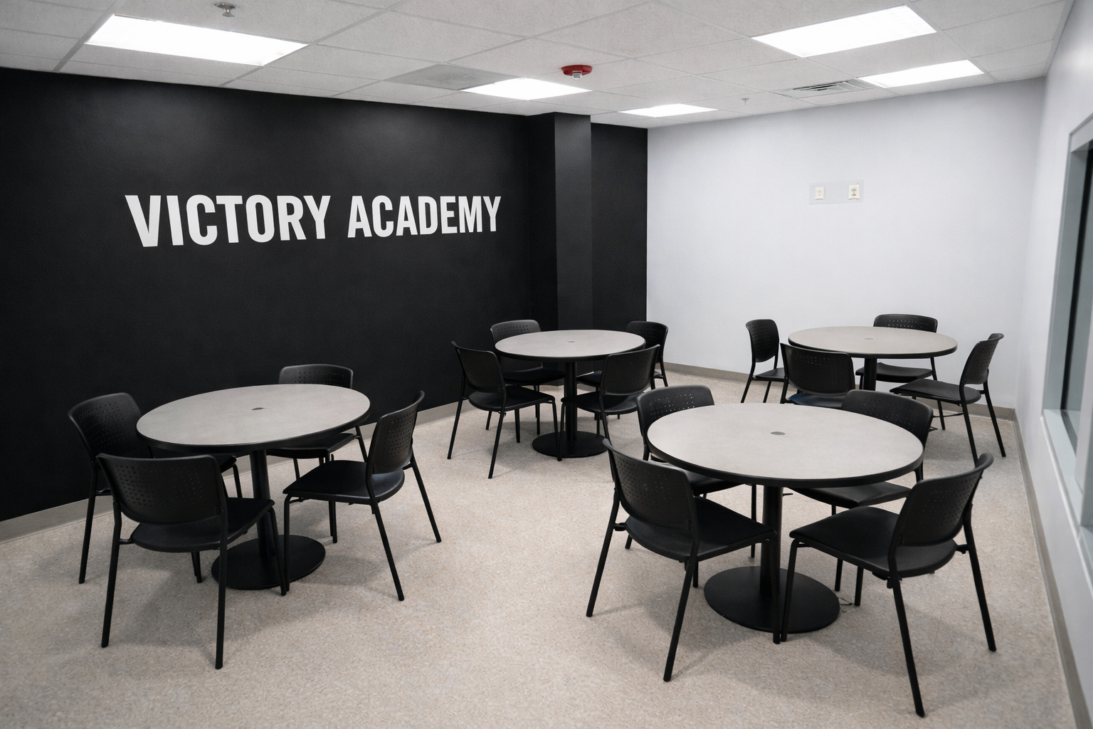 A quiet, focused space for homework, tutoring, and study time—conveniently located right next to the wrestling mats to support structured routines before and after training.